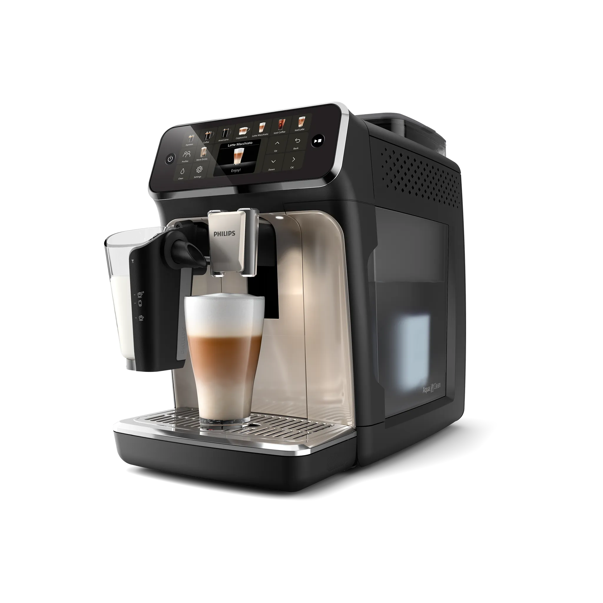 Erlebe 20 Kaffeespezialitäten auf Knopfdruck und ein Milchsystem ohne Schläuche, das in Sekunden sauber ist. Spare Zeit und Geld, während du barista-würdigen Genuss und personalisierte Profile in deiner Küche genießt.